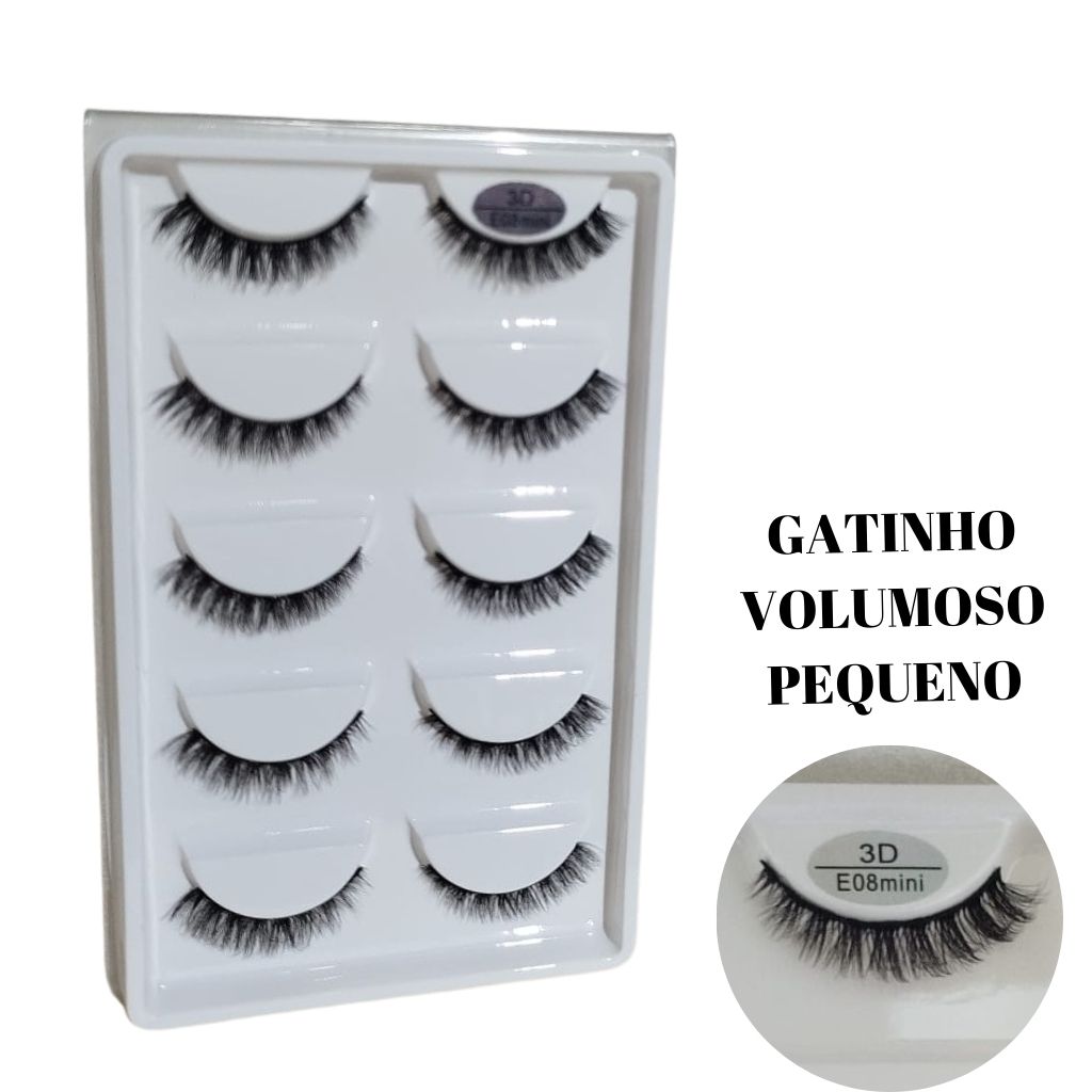 CAIXA COM 5 PARES DE CÍLIOS POSTIÇOS E08 3D MINI GATINHO COM TAMANHO MENOR
