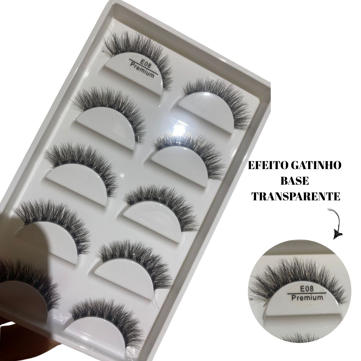 O E08 Premium é a escolha ideal para quem busca cílios naturais com efeito gatinho e acabamento sofisticado.